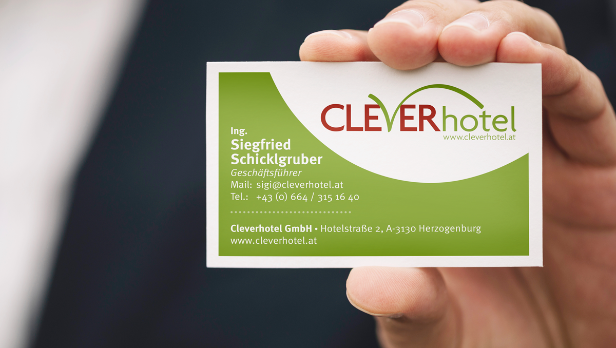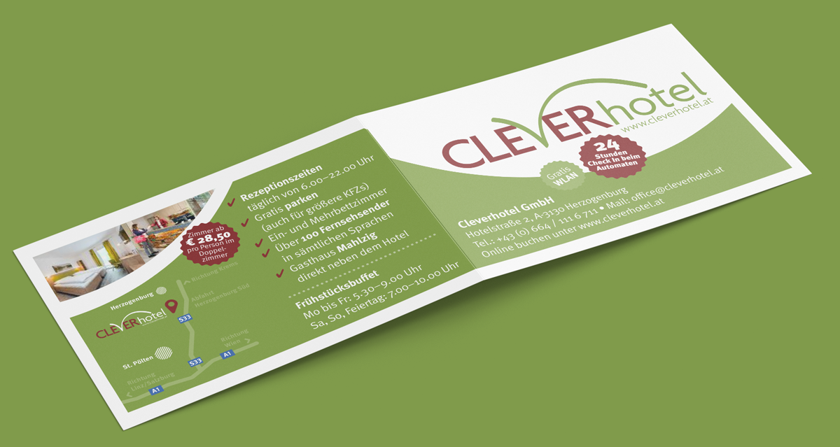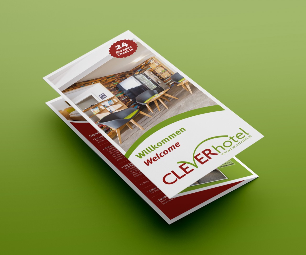Cleverhotel Broschüre/Folder Cleverhotel Visitenkarte Cleverhotel Visitenkarte Cleverhotel Türhänger Cleverhotel Broschüre/Folder