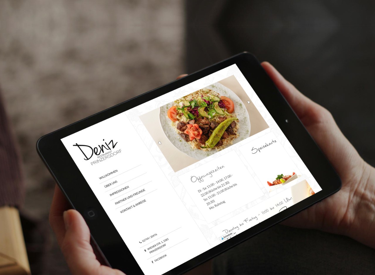 Deniz Restaurant Speisekarte Deniz Restaurant Bierdeckel Deniz Restaurant Inserat Deniz Restaurant Tafel Öffnungszeiten Deniz Restaurant Speisekarte Titelbild Deniz Restaurant Speisekarte zum Mitnehmen Deniz Restaurant Tisch-Aufsteller Deniz Restaurant Website (Ansicht responsive) Deniz Restaurant Website (Ansicht Tablet) Deniz Restaurant T-Shirt Deniz Restaurant Gourmetmeile St. Pölten