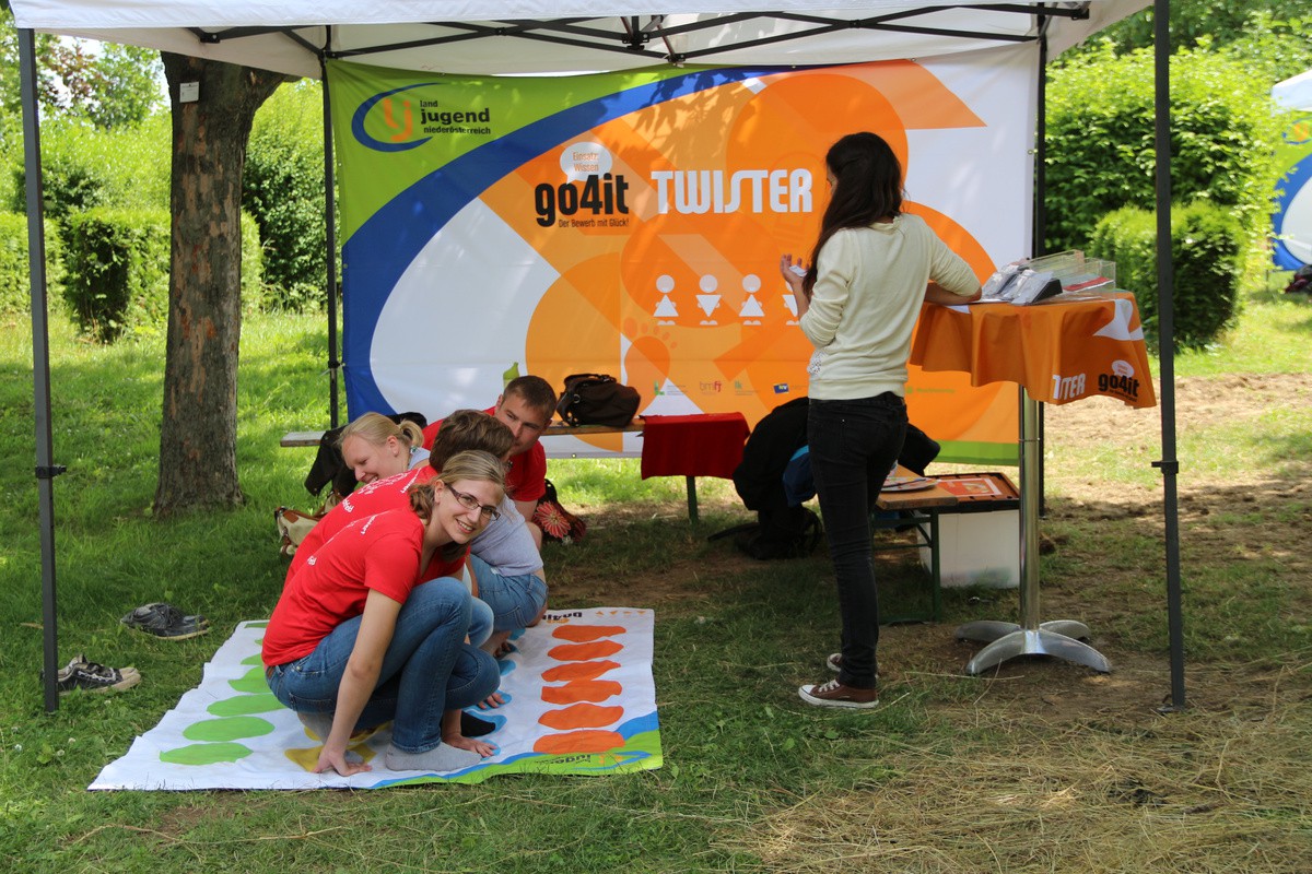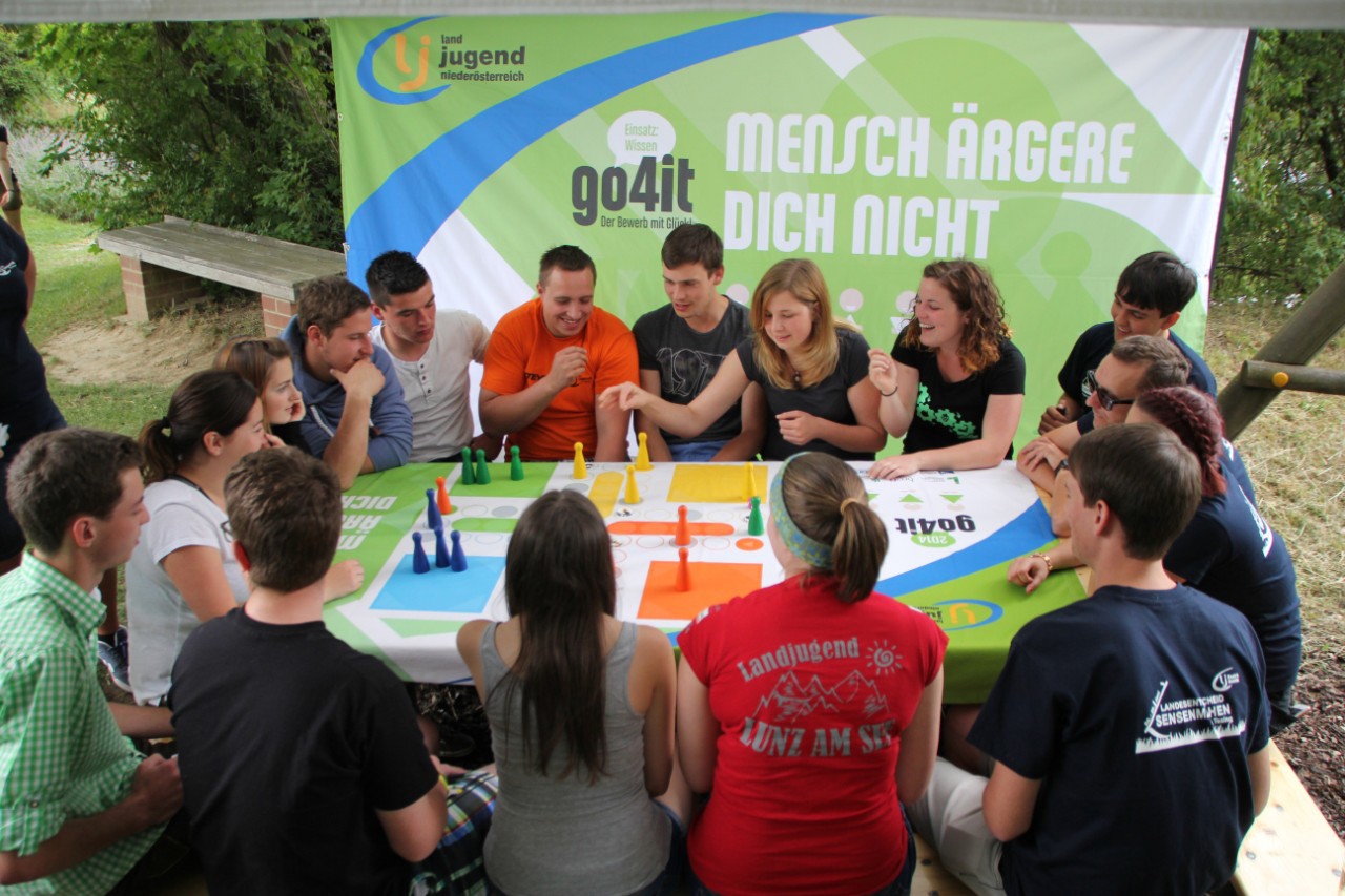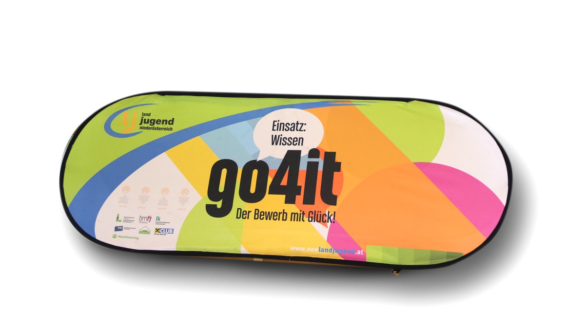 Landjugend NÖ – go4it Logo Landjugend NÖ – go4it Würfel und Tischdecke Landjugend NÖ – go4it Aufsteller Landjugend NÖ – go4it Station "Riesenmikado" Landjugend NÖ – go4it Station "Twister" Landjugend NÖ – go4it Station "Mensch ärgere dich nicht" Landjugend NÖ – go4it Station "Mein Team kann" Landjugend NÖ – go4it Station "Ruck-Zuck"