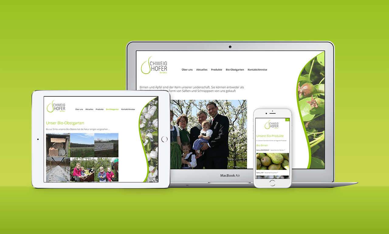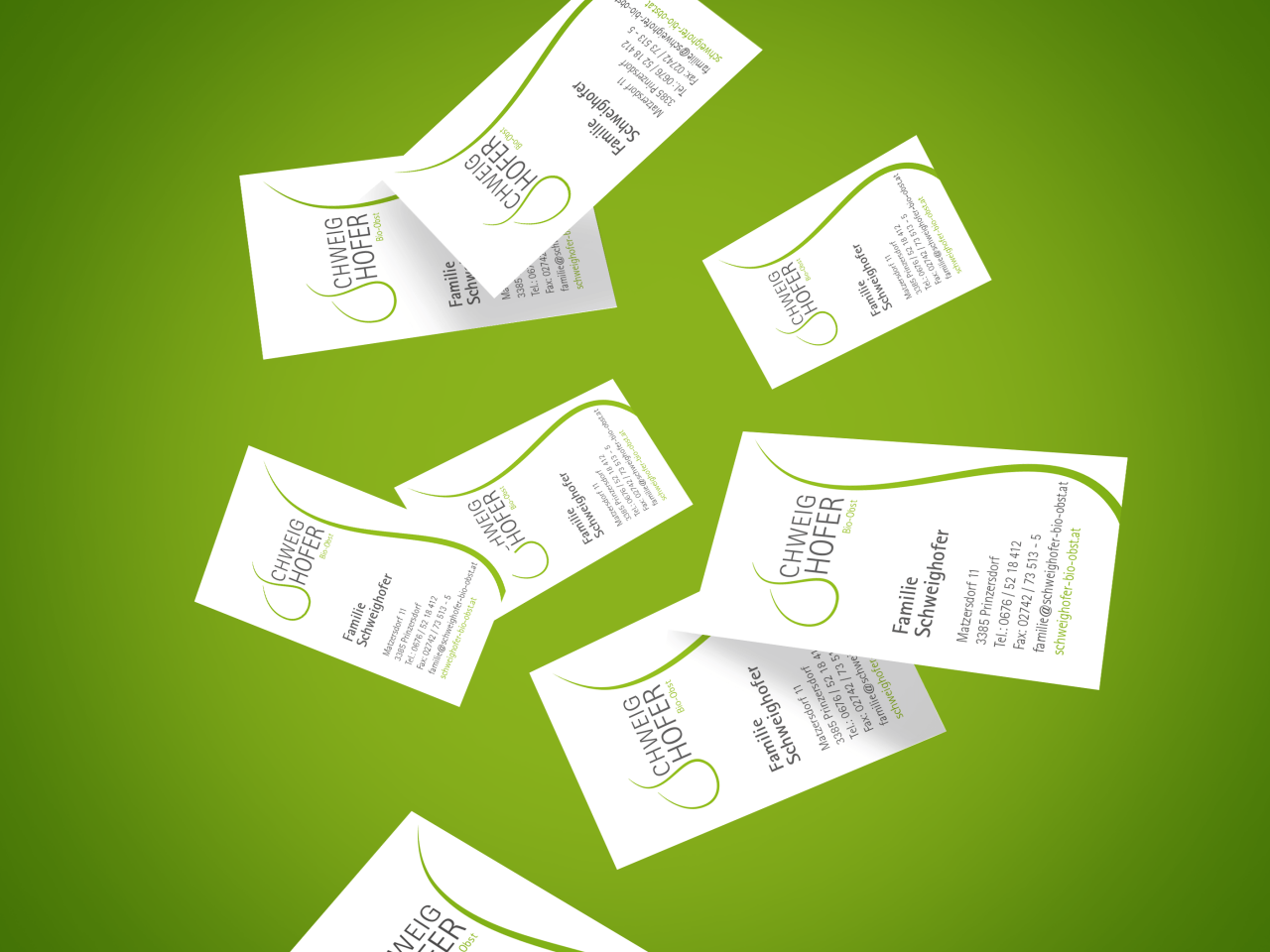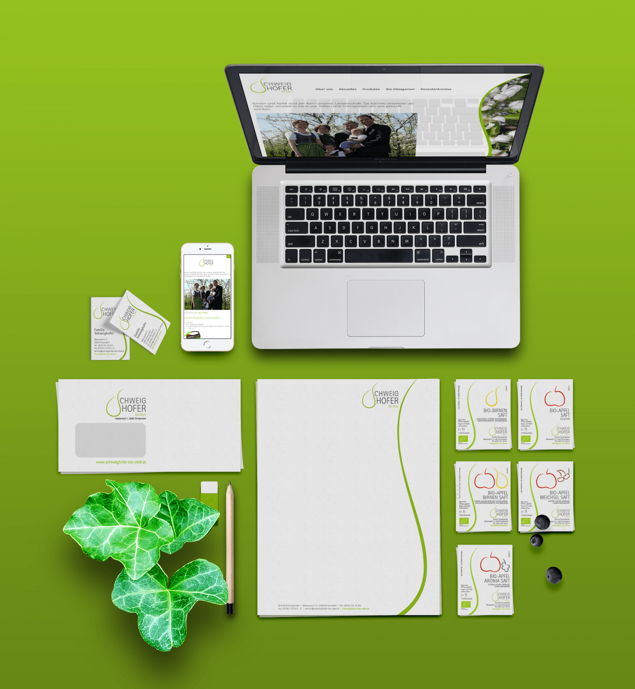Schweighofer Firmenauftritt Schweighofer Visitenkarten Schweighofer Flaschen Etiketten Schweighofer Schild Schweighofer Website (Ansicht mobil) Schweighofer Website (Ansicht responsive)