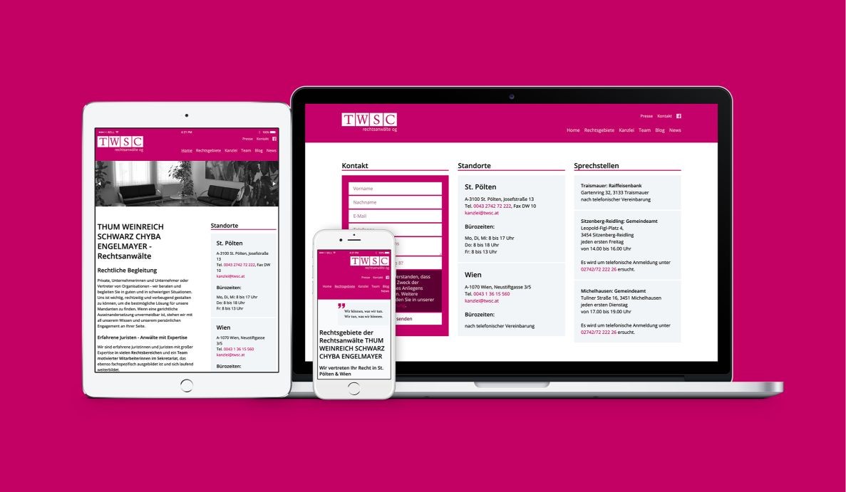 Der Slogan der Rechtsanwaltskanzlei Thum Weinreich Schwarz Chyba Rechtsanwälte OG lautet: "Wir tun, was wir können. Wir können, was wir tun." Das gleiche gilt auch für uns, darum durften wir für die Kanzlei einen Relaunch ihres Corporate Designs durchführen. Außerdem haben wir für die Kanzlei zur besseren Kommunikation mit ihren Klienten eine neue "Klientenzeitung" entworfen.