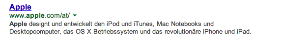 Im folgenden Bild sieht man die einzelnen Elemente Titel und Beschreibung eines Suchmaschineneintrags. Weiters wird auch die URL unter dem Titel angezeigt.